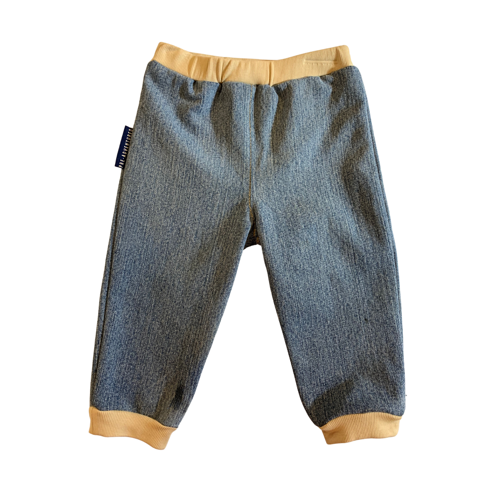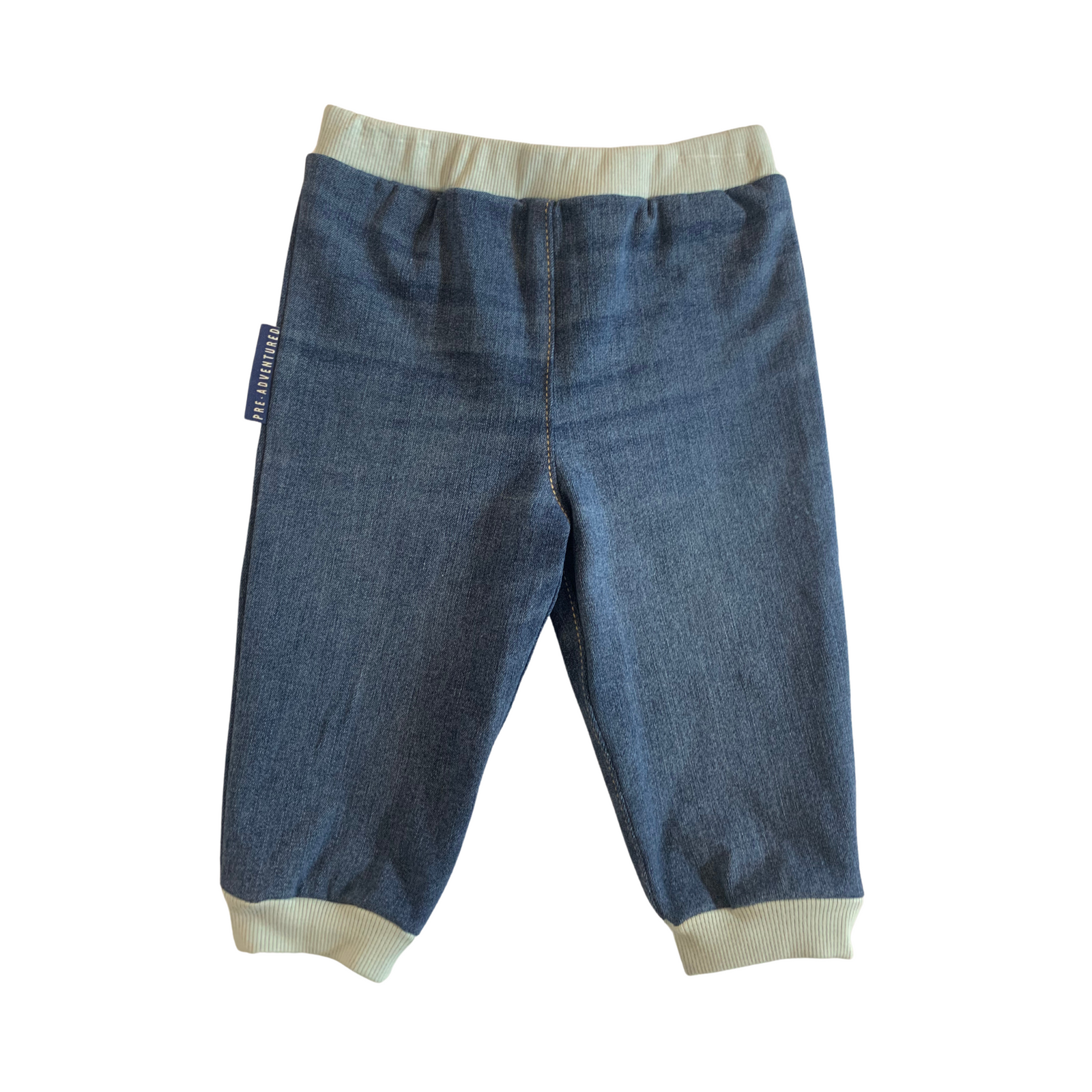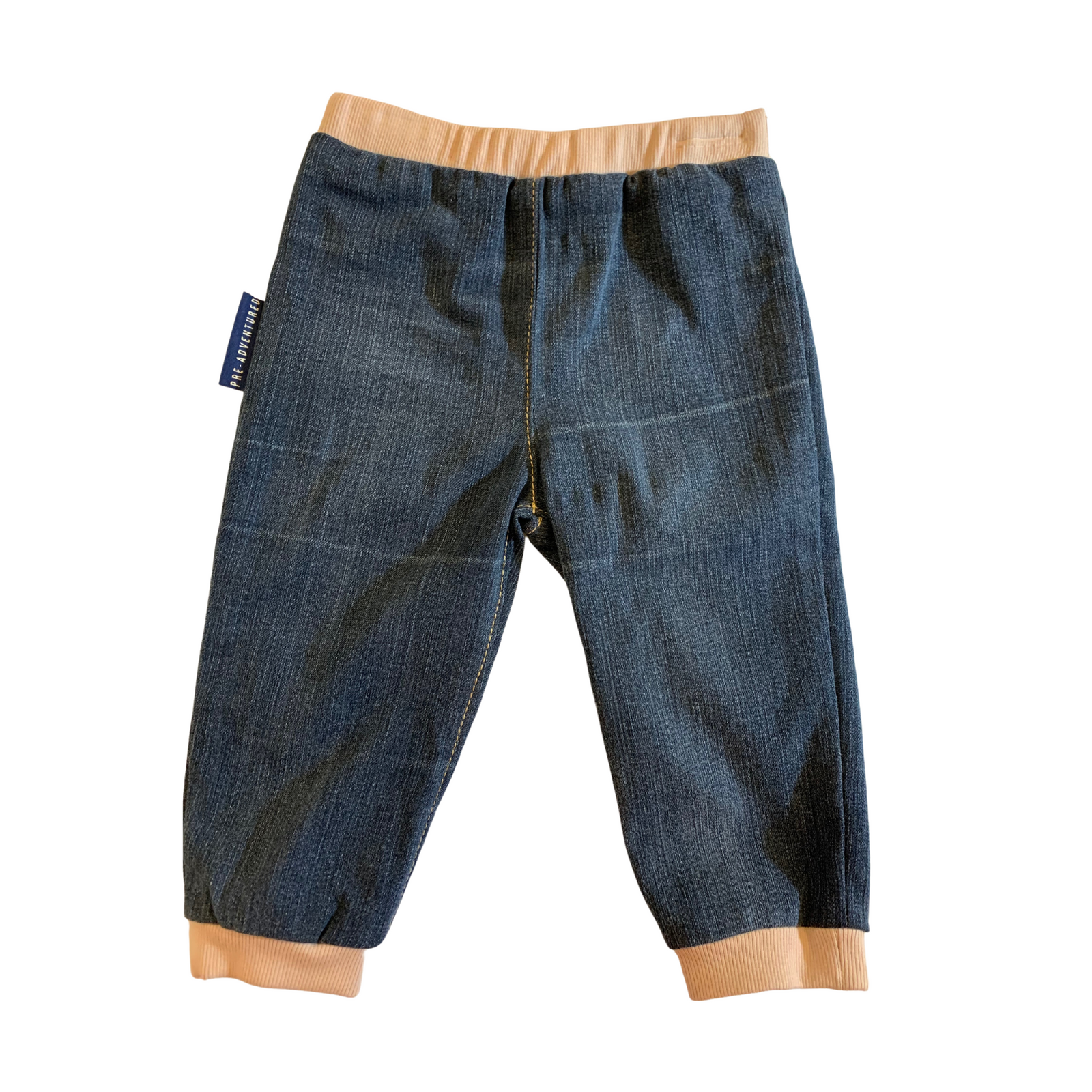 Fyne's Little Adventure Pant has a simple design and relaxed fit that moves with your little one. With extra room for diapers and a soft jersey elastic waistband, these pants make getting dressed easy. Ethically made in Canada using reclaimed and sustainable materials.